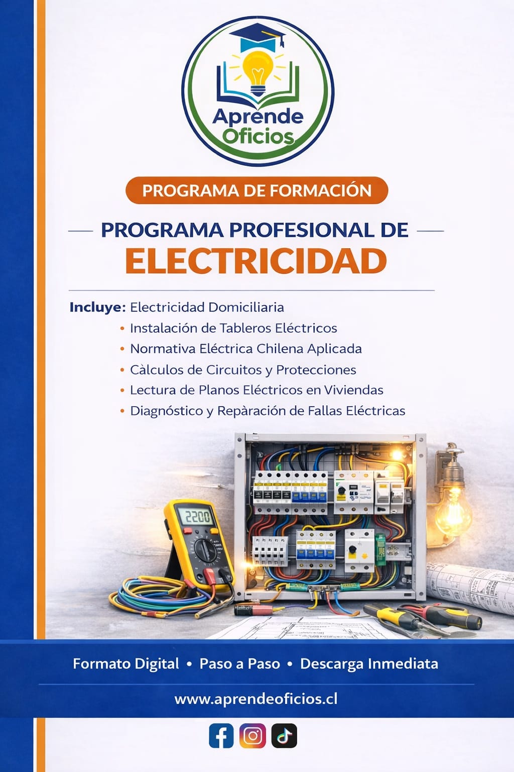 El Programa Profesional de Electricidad reúne todas las guías de formación eléctrica de Aprende Oficios. Es el programa ideal para quienes desean aprender electricidad de forma completa y profesional.