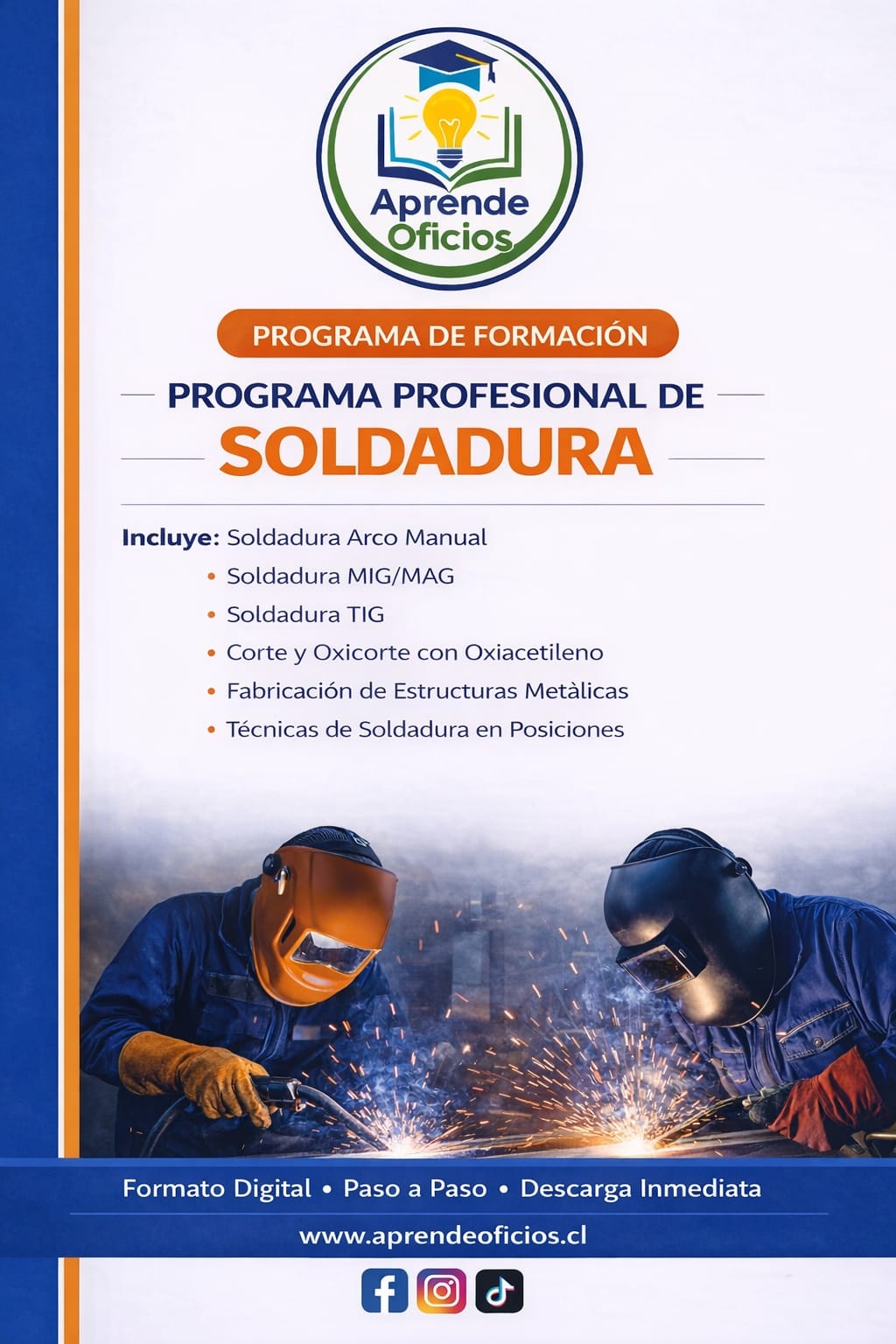El Programa Profesional de Soldadura incluye todas las guías de formación en soldadura de Aprende Oficios.